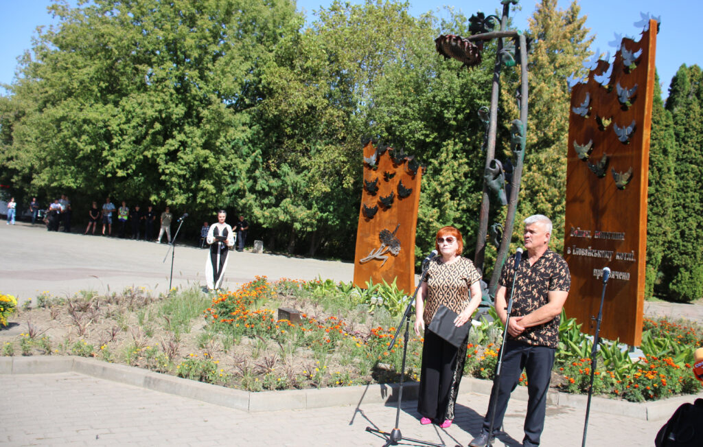 Сьогодні, 29 серпня, відбулося відкриття Меморіального знаку пам’яті загиблим воїнам Іловайська, встановленого при вході до алеї, що веде до Пагорба Слави.