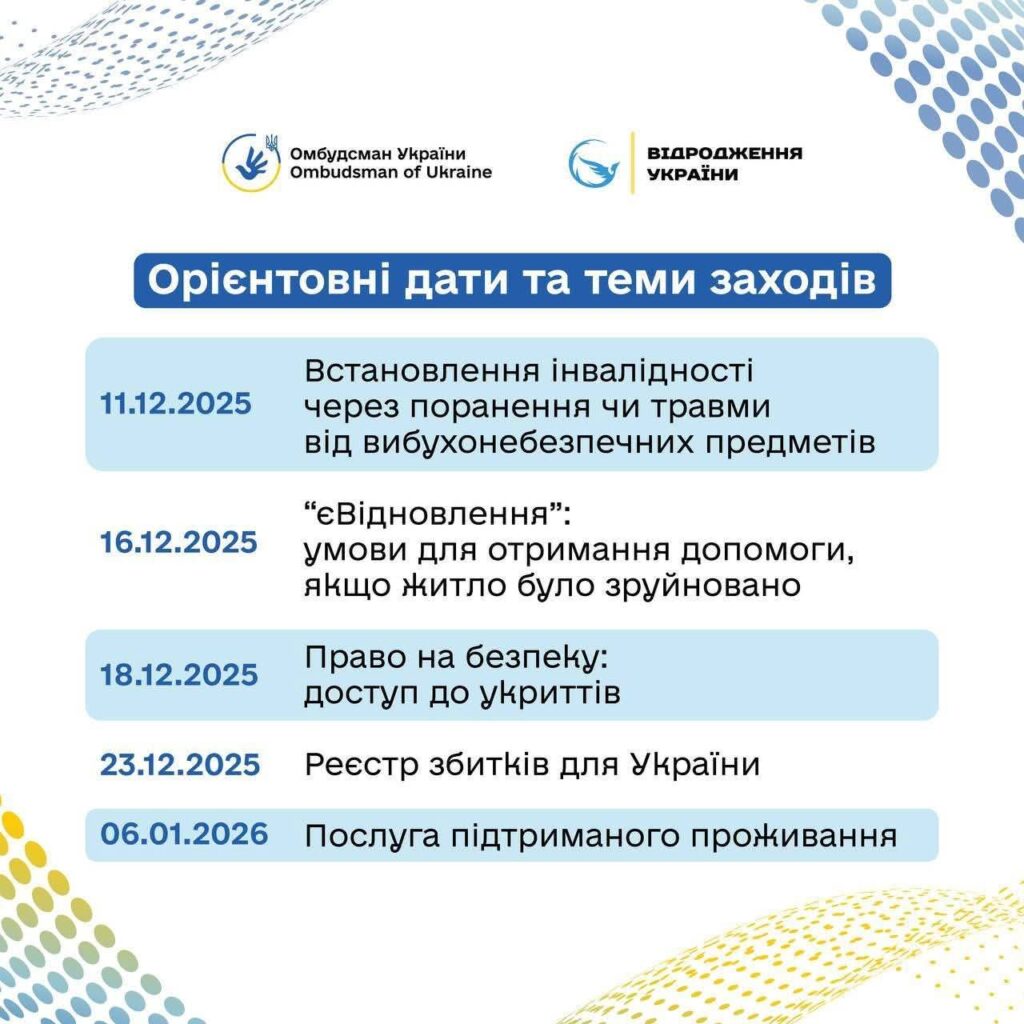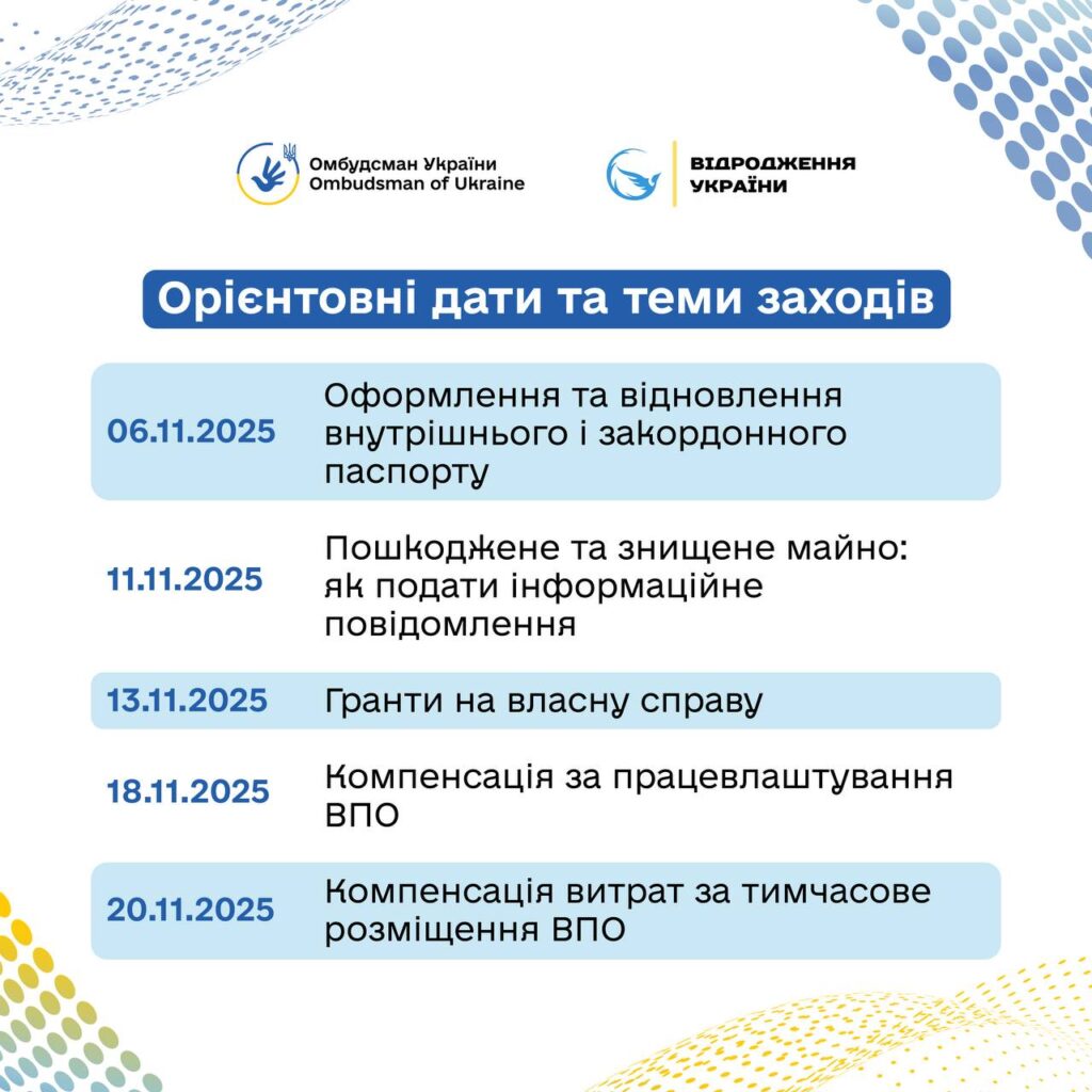 Із 21 жовтня 2025 року з метою підвищення правової обізнаності внутрішньо переміщених осіб та осіб, які постраждали внаслідок збройної агресії проти України розпочинається проведення серії безоплатних вебінарів.