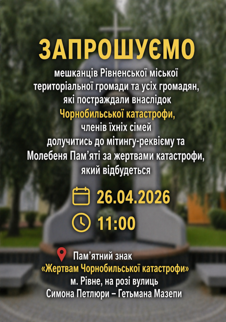 40-ві роковини Чорнобильської катастрофи: запрошуємо мешканців громади на заходи