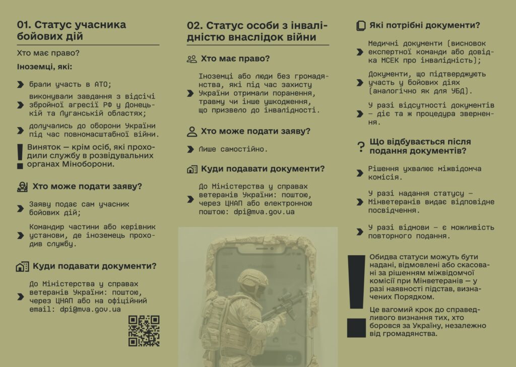 Уряд затвердив Постанову №719, яка вперше чітко визначає процедуру отримання (або позбавлення) статусу учасника бойових дій і особи з інвалідністю внаслідок війни для іноземців і людей без громадянства.