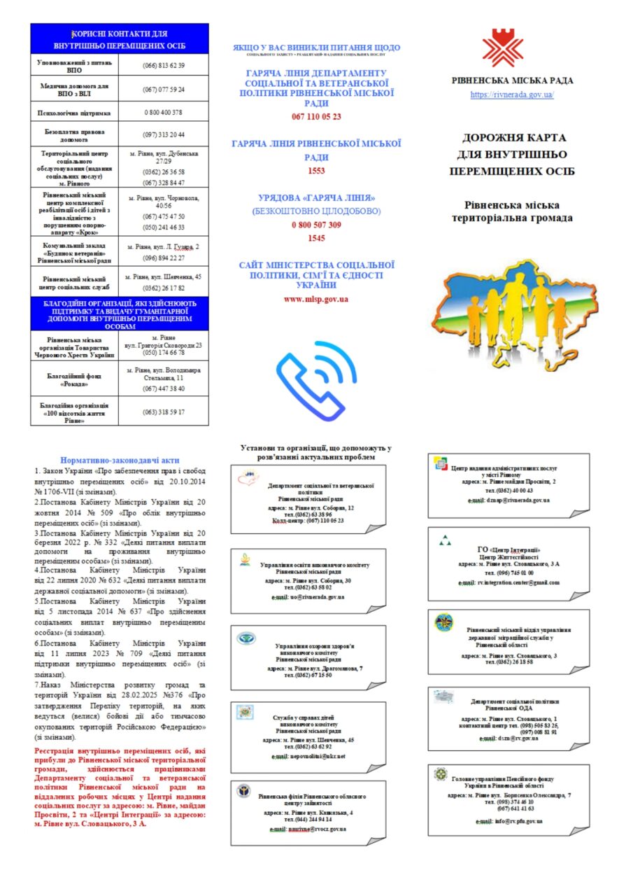 та надання консультацій внутрішньо переміщеним особам, як і раніше, буде проводитись працівниками Департаменту соціальної та ветеранської політики Рівненської міської ради за адресами:
